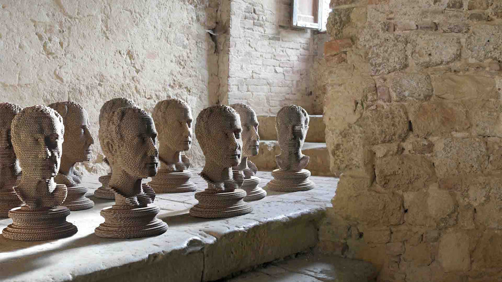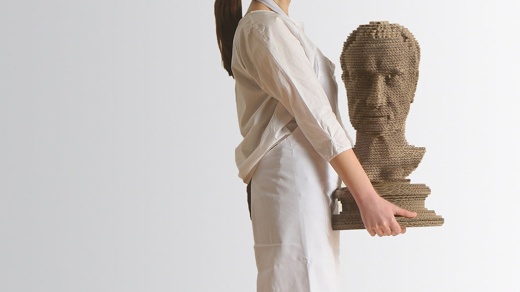 Il busto scultoreo raffigura in modo originale e ironico la figura dell'imperatore romano Giulio Cesare. Questo è uno dei primi personaggi storici che verranno rappresentati, così da poter allestire gli spazi in modo iconico e con un design innovativo ed eclettico. Il cartone è un materiale riciclabile e rinnovabile: perfetto per chi vuole arredare la propria casa in modo eco sostenibile. Totalmente Made in Tuscany, 100% Made in Italy.